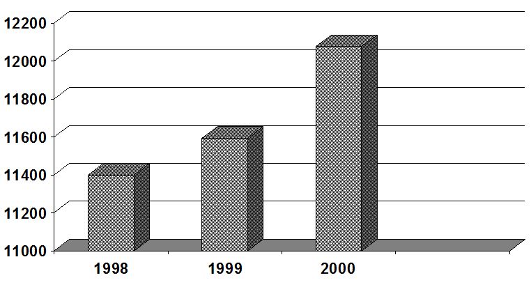 Dane z raportu podają również wzrost sprzedaży na przestrzeni od 1996 do 2000 roku: